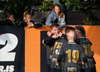 Hann Bóas okkar er orðinn landsþekktur ekki sÃst fyrir vinsamleg tilmæli sÃn til dómara úr stúkunni. DómaratrÃó kvöldsins vildi sýna þakklæti sitt à verki og færði honum nýtt sett af spjöldum að gjöf fyrir leik. Höfðinglegt af Einari, Bryngeiri og Andra #allirsemeinn pic.twitter.com/hPt5bk0foQ