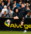 Kennie Chopart brýtur á Óttari Magnúsi við hornfánann á vinstri kantinum