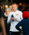 Bóas byrjar skyndilega að fagna af krafti í stúkunni! Var að fá þær upplýsingar að Manchester United væri komið yfir gegn Úlfunum.