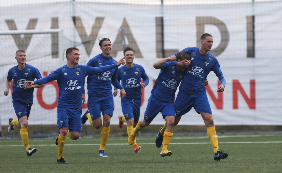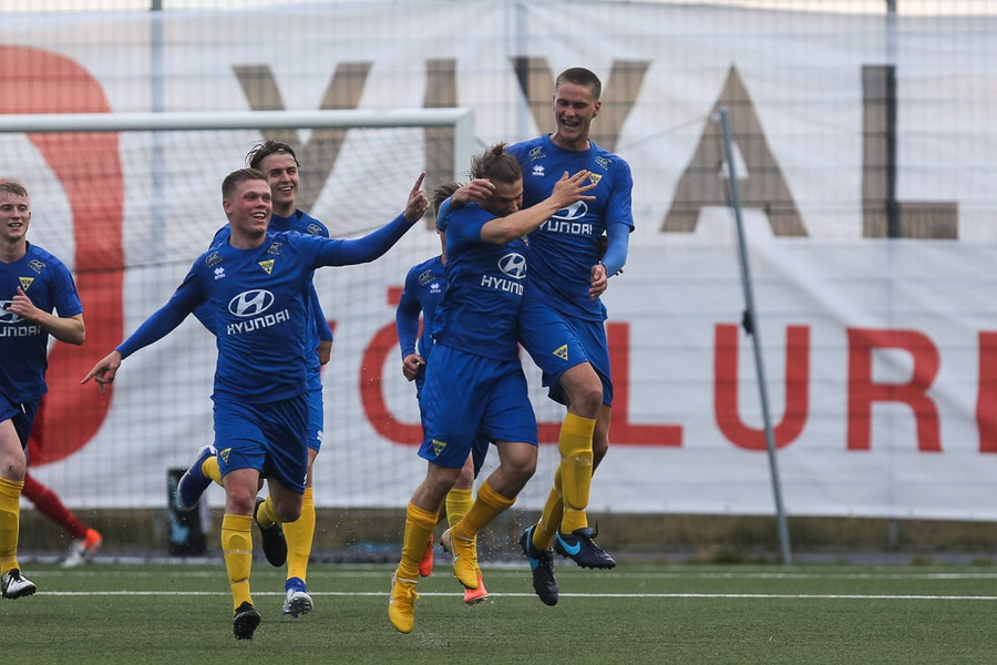 Gegn gangi leiksins en það er ekki spurt að því í fótbolta. Kristófer Orri með skot sem fer af varnarmanni og berst til Sölva. Geggjað skot í fyrsta sem fer fyrst í jörðina og Hlynur nær ekki almennilegri snertingu á boltann og inn lekur hann.