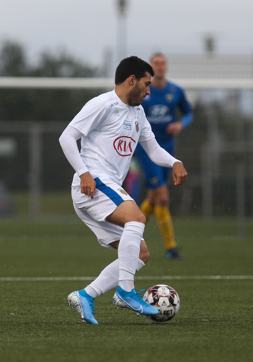 Sýndist þetta vera Fred sem fer illa með Kristó Scheving áður en hann nær sendingu fyrir markið sem Arnar Þór hreinsar í horn. Úr horninu verður lítið annað en klafs en Halldór Kristján liggur eftir, að því er virðist með höfuðhögg. Stendur sem betur fer upp að lokum og ætlar að halda leik áfram.