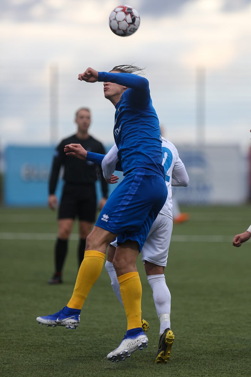 Hornspyrna sem Kristófer Orri tekur inn á teiginn, Sölvi nær skallanum en hátt yfir markið fer boltinn.
