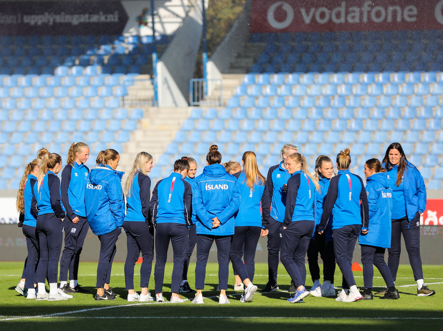 Ísland leikur með sorgarbönd í dag til minningar um Atla Eðvaldsson, goðsögn í íslenskri knattspyrnu, sem lést í dag eftir illvíg veikindi. Sif Atladóttir dóttir hans hefur dregið sig úr leikmannahópnum af þessum sökum. Fótbolti.net sendir innilegar samúðarkveðjur til fjölskyldu og vina Atla.