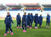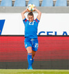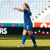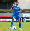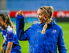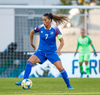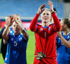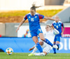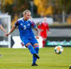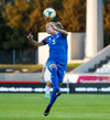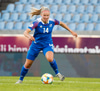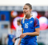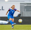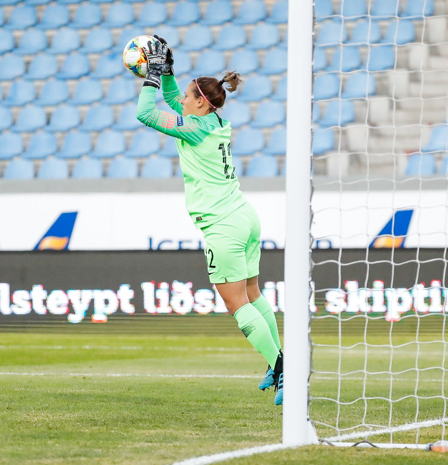 Elín Metta fær aukaspyrnu rétt fyrir utan teig. Hallbera er með flottan bolta sem að mér sýnist að Maria í markinu missir frá sér.