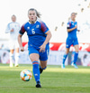 Dagný keyrir upp kantinn og nær að koma boltanum fyrir.