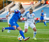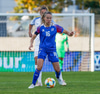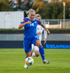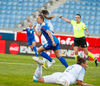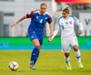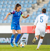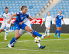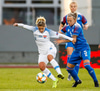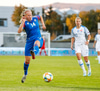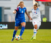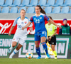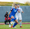 Fanndís brýtur á Partíciu Hímírová. Slóvakía fær aukaspyrnu a miðjum vallarhelmingi þeirra.