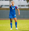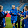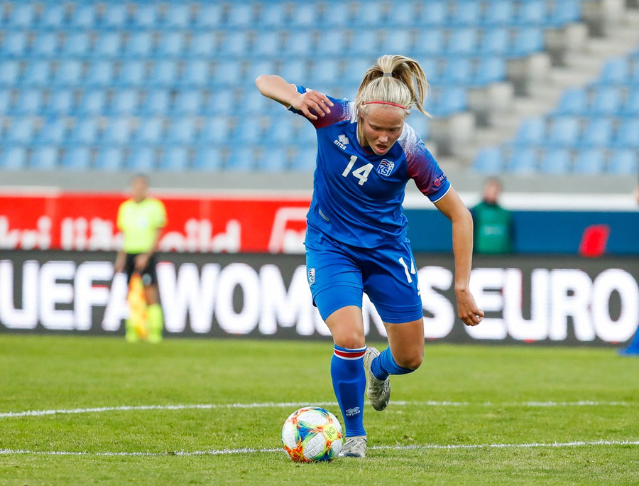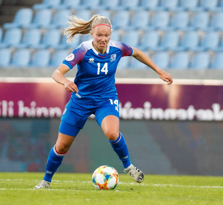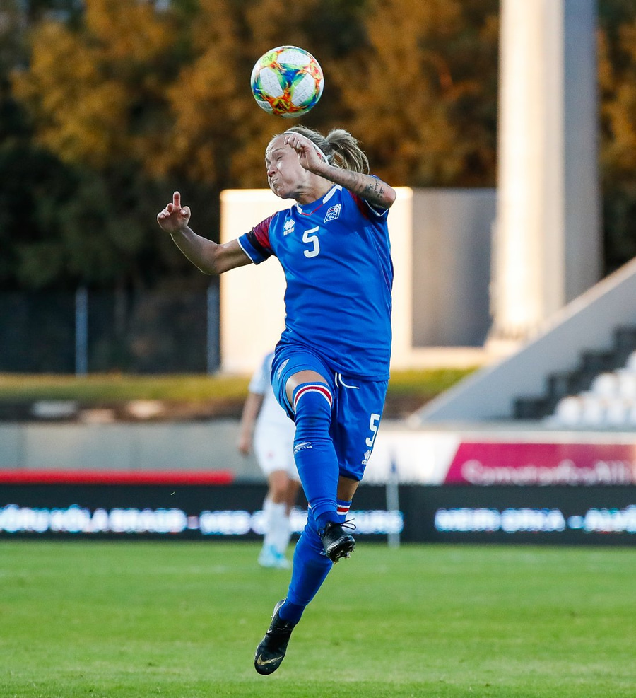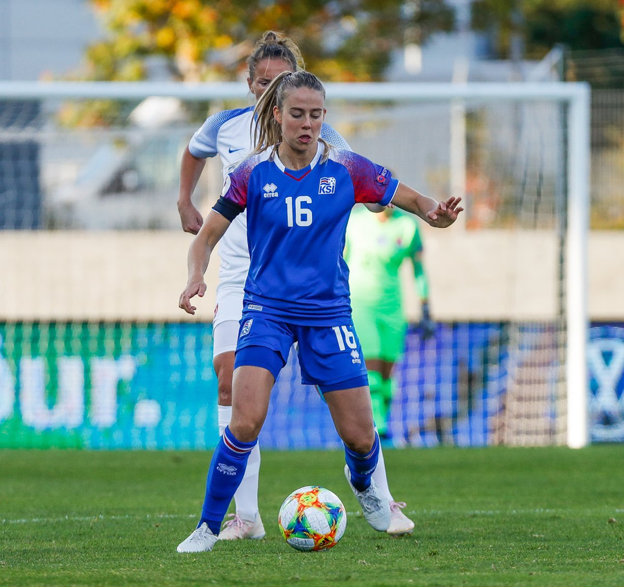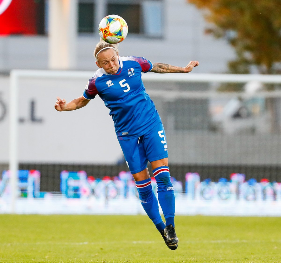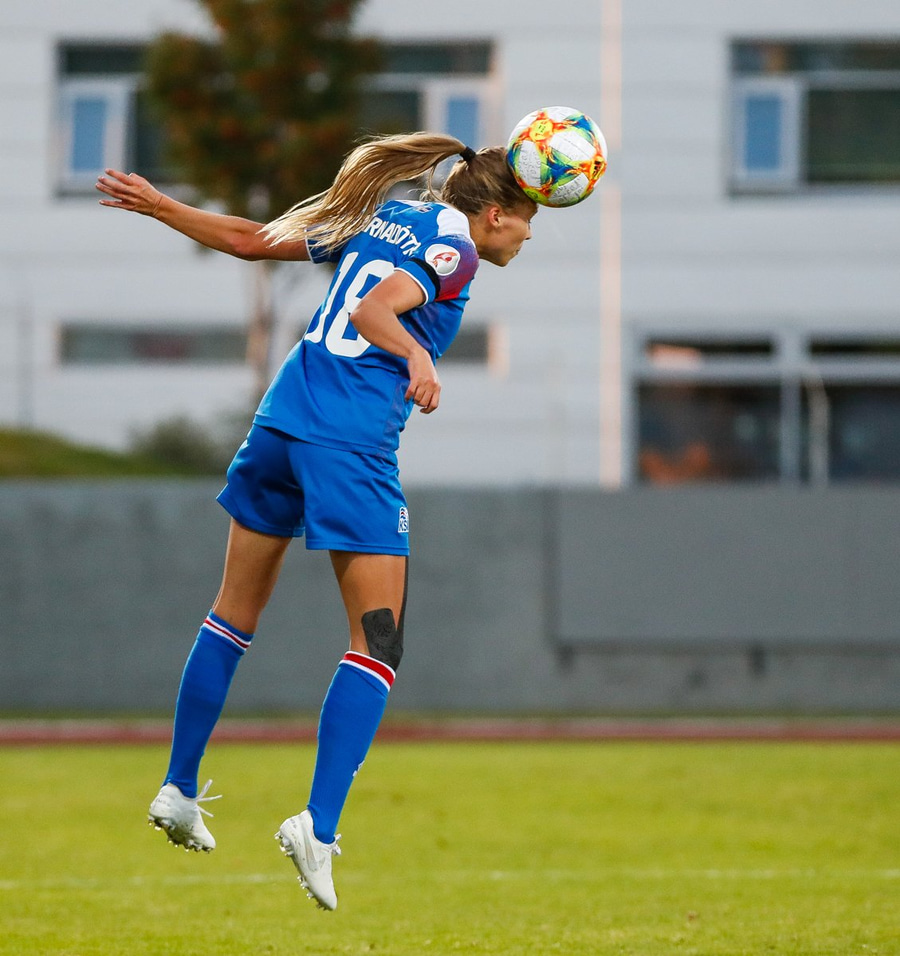 Hallbera með flottan sprett upp kantinn sem endar með skalla frá Dagný sem fer rétt framhjá!