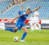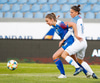 Maria Mikolajová tekur spyrnuna en Dagný nær að skalla í burtu.