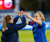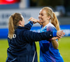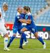 Glódís spyrnir löngum bolta fram sem fer í bakið á Diana. Mér sýnist að Gunnhildur nær að skalla boltan til Elínar. Hún gerir vel og fer framhjá Diana og leggur hann í fjærhornið. Vel gert!