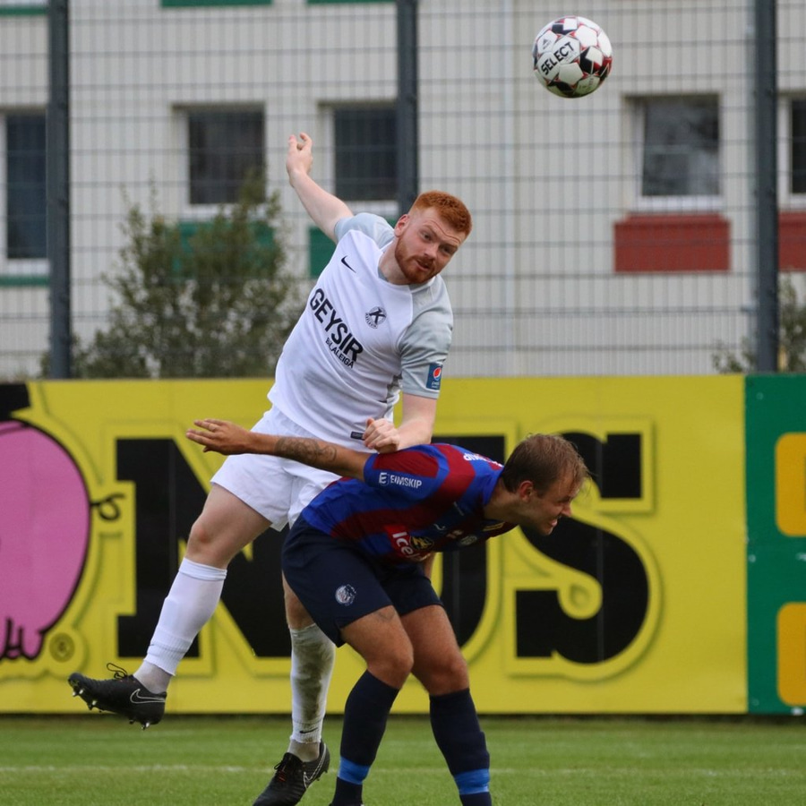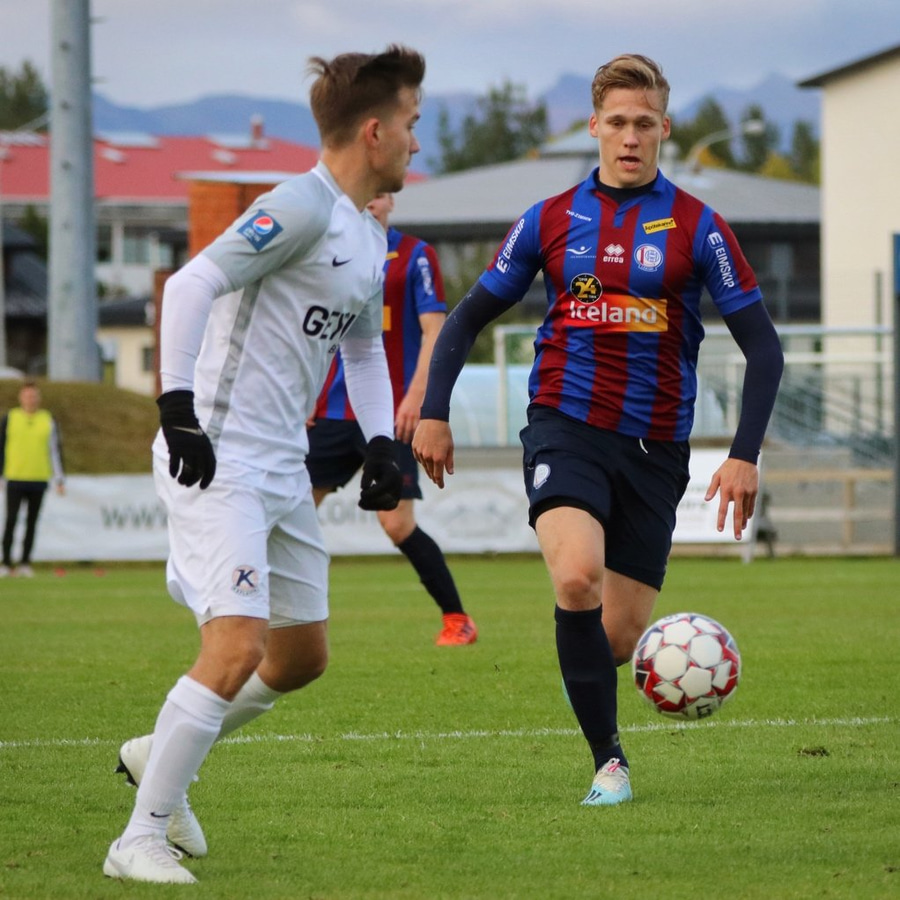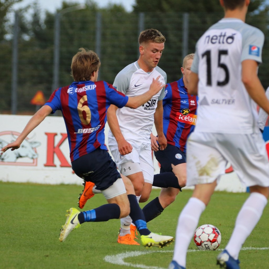 Kristján Páll Jónsson með skot en framhjá. Gerir vel og sækir inn á völlinn frá hægri en skotið ekki eins og hann sá fyrir sér.