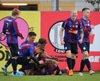 Liðin í óðaönn að klára upphitun.