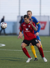 Andri Freyr og Kristófer berjast um boltann eftir skyndisókn gestann og Kristófer fær aukaspyrnu.