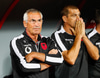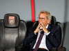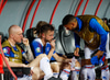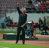 Þjálfari Albaníu fær gult spjald fyrir tuð.