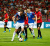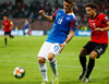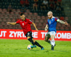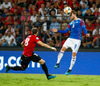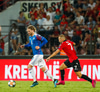 Ray Manaj er hættulegasti leikmaður Albana. Hann fær boltann, snýr Kára af sér, en Kári nær á endanum að stöðva hann. Ekkert verður úr hornspyrnunni sem Albanía fær. Þrumur og eldingar hér í Albaníu.