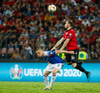 Memushaj skýtur í varnarvegginn og Albanir fá hornspyrnu.