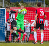 Logi fær annan séns núna. Finnur Tómas hreinsar í horn eftir snöggt innkast Davíðs.