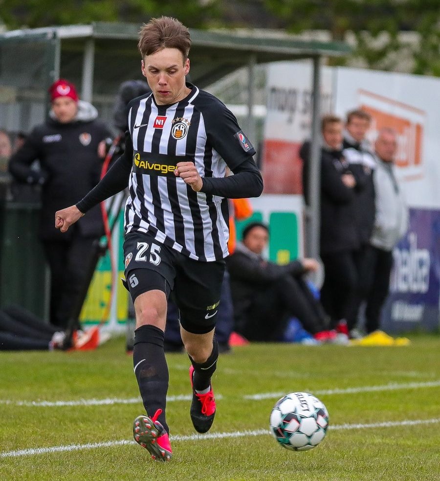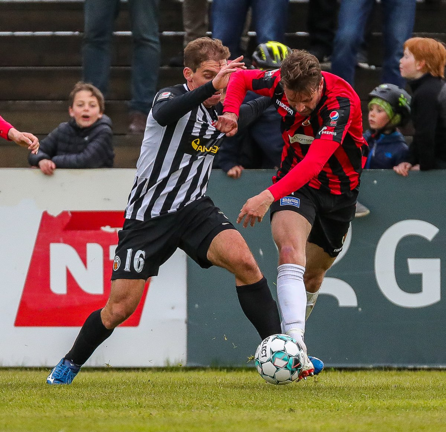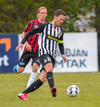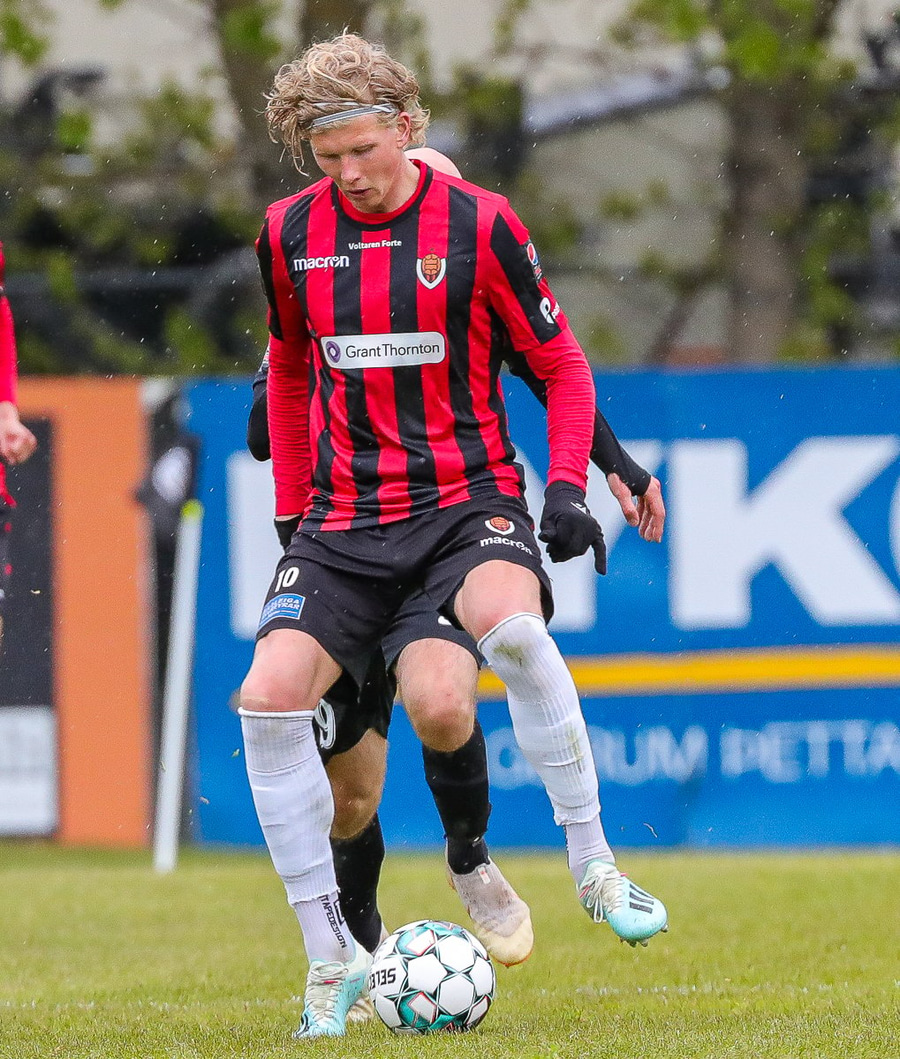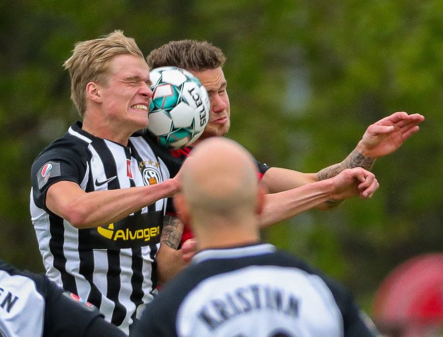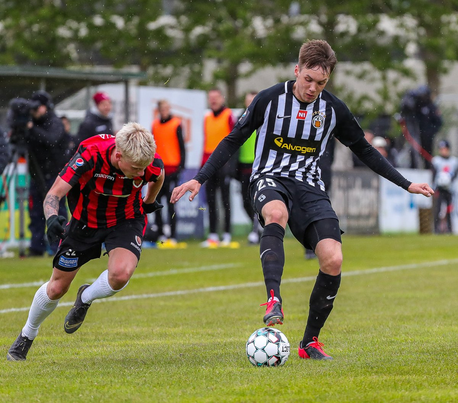 Ingvar aftur í smá brasi í návígi. Boltinn skoppar í kjölfarið á sendingu eftir hornið. Finnur Tómas eltir og er á undan Ingvari sem nær að hlaupa til baka og grípa boltann áður en Finnur náði honum aftur.
