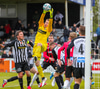 Beitir slær boltann í burtu, ósannfærandi, eftir hornið og í kjölfarið fellur Óttar, kallað eftir víti.
