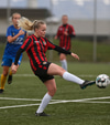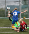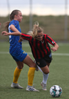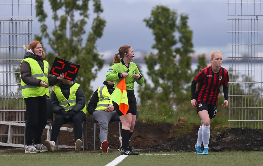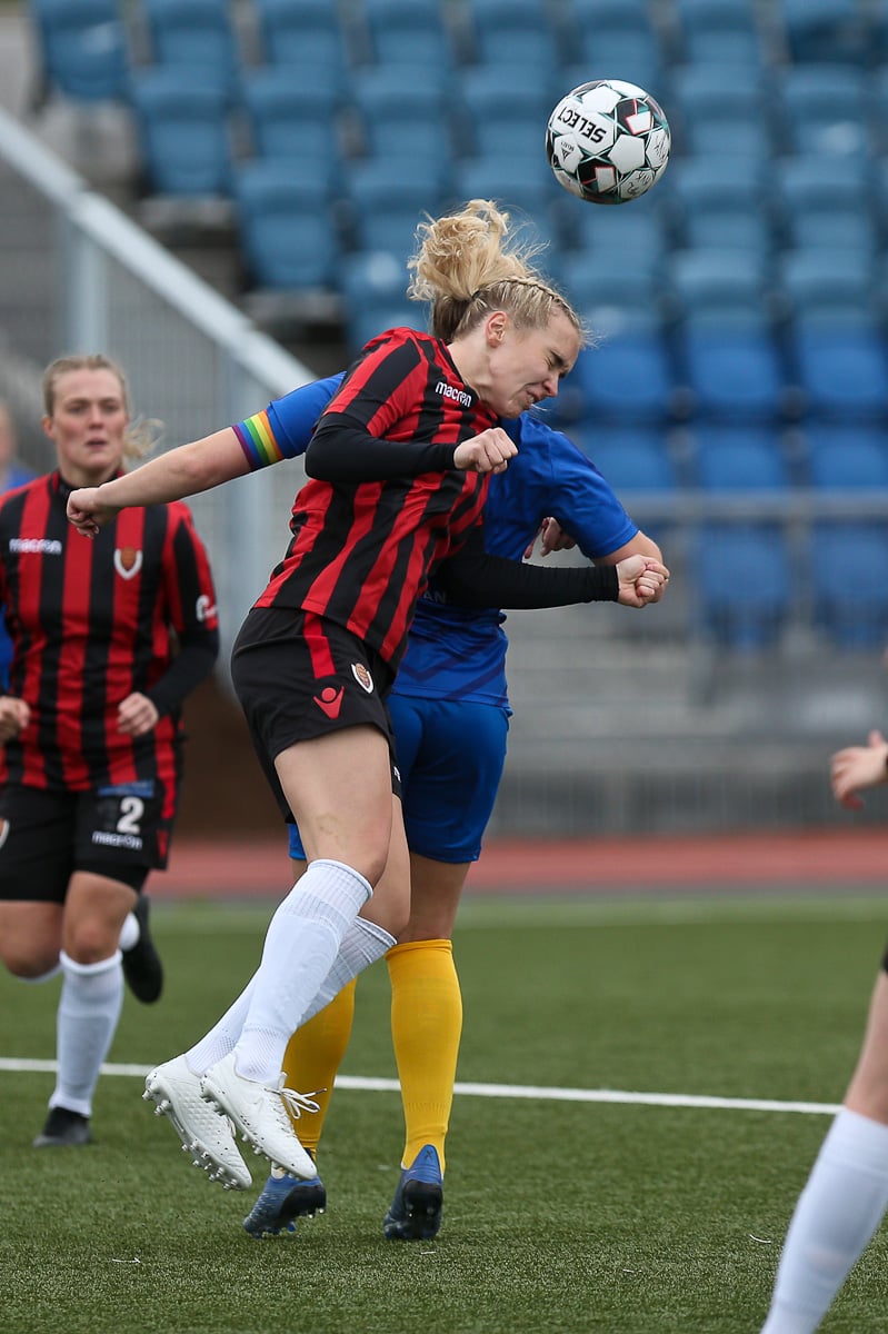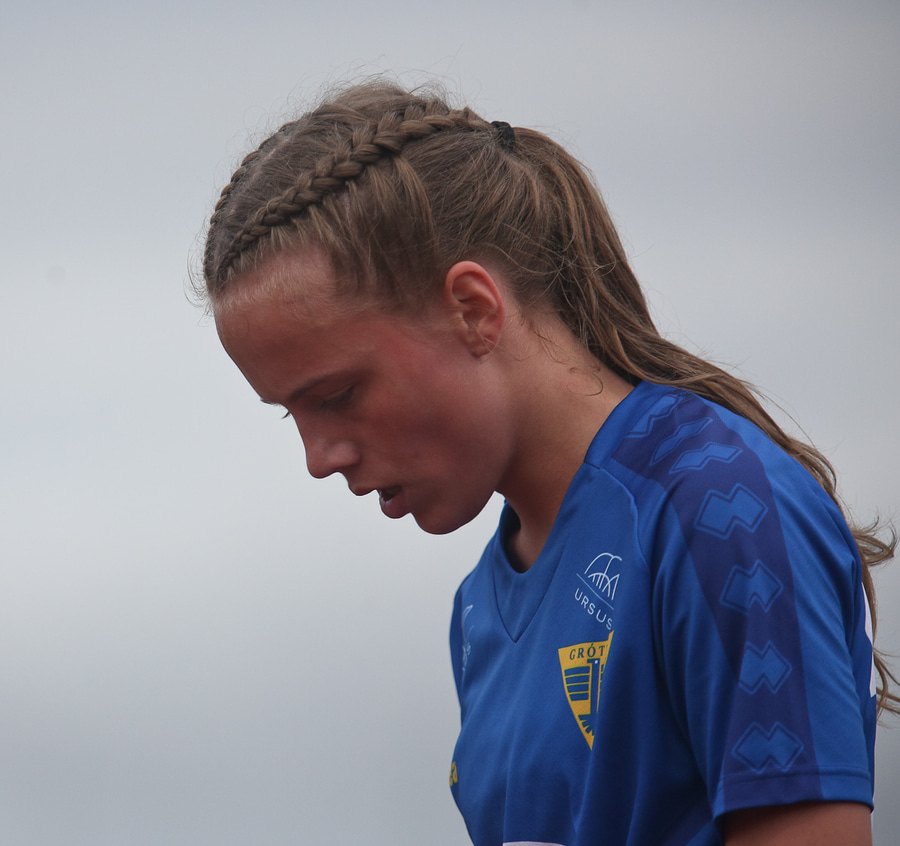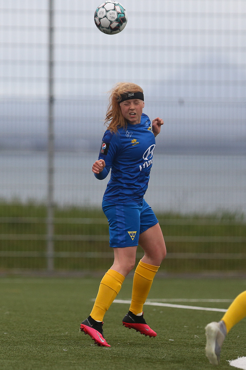 Frábær bolti hjá Telmu Sif inn á teiginn. Brynhildur Vala var hinsvegar rangstæð og skallar hann langt yfir.