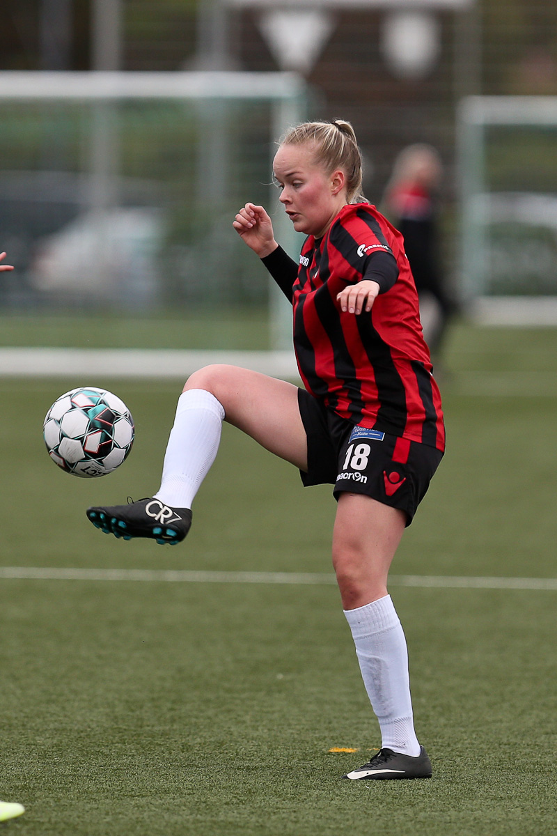 Tinna Jóns fékk langan boltann fram og var á móti tveimur varnarmönnum Víkings. Hún skýtur að marki og Halla grípur.