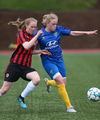 María Lovísa komin ein á móti Þórönnu. Hún nær skoti en það fer beint á Höllu í markinu.
