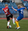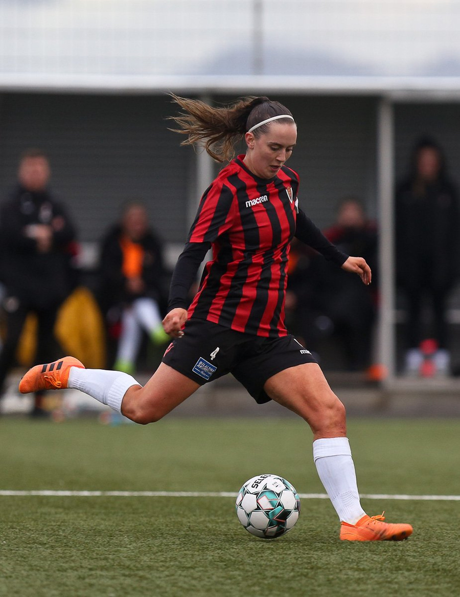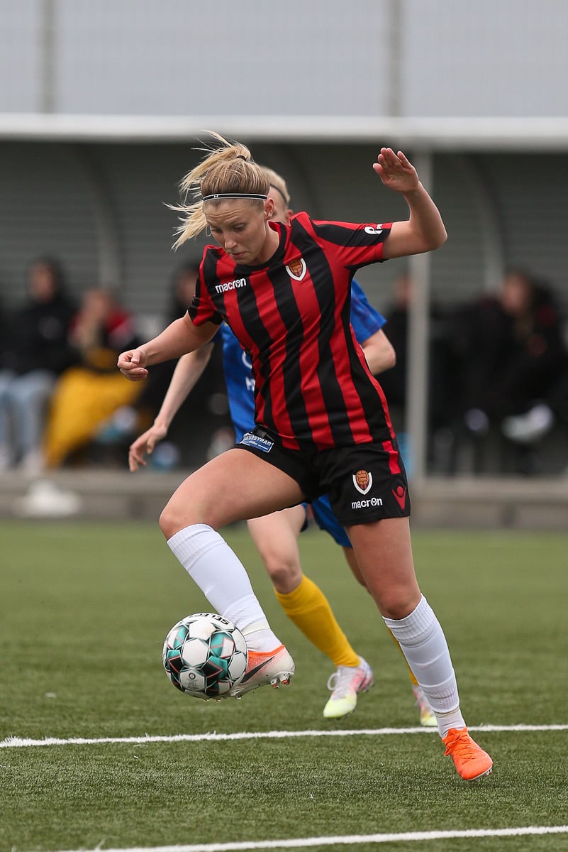 Nadía með frábæran sprett upp vinstri kantinn. Emma nær henni og setur boltann í horn.
