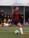 Nadía keyrir upp kantinn og nær að setja hann inn fyrir. Ég sé ekki hver stendur þar en hún hefði hæglega geta sett boltann í markið en misreiknar hann.