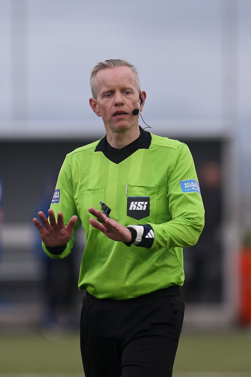Hún rífur leikmann Víkings niður rétt fyrir utan vítateig og Víkingur fær aukaspyrnu nokkrum millimetrun frá teignum.