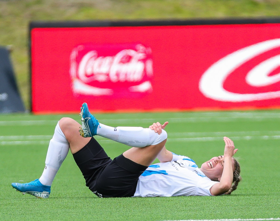 Á sama tíma rekast Dagný og Birkir dómari saman og Dagný fellur við. Smá skellur en hún hristir þetta af sér.