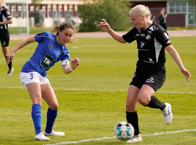 Birna með skot eða fyrirgjöf í Örnu og afturfyrir, annað horn.