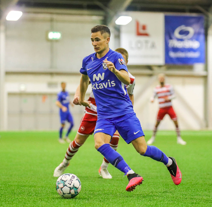 Leifur Andri með frábæran bolta á Alexander Frey inn í teig en honum tekst ekki að taka nógu vel á móti honum