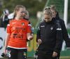 Ingibjörg stendur framalega í markinu og Fylkir nær boltanum á miðjunni. Hulda Hrund ætlar að reyna setja boltann yfir hana en setur boltann framhjá markinu.
