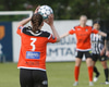 KR fær aukaspyrnu á miðjum velli. Kristín Erla tekur hana og Katrín Ásbjörnsdóttir nær skallanum en Cecilía grípur hann.