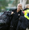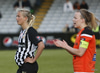 Mér sýnist hún vera meidd. Sjúkraþjálfarinn er að sinna henni á hliðarlínunni.