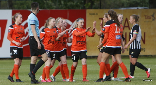 Fín sókn hjá KR endar með því að Katrín skallar boltann til Ingunnar sem setur hann í markið en hún rangstæð.