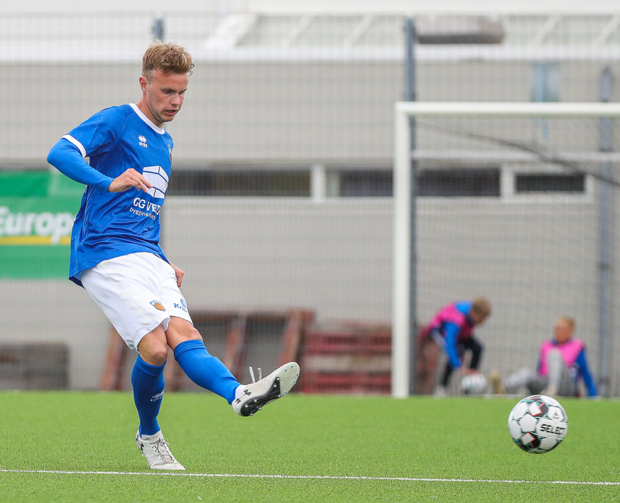 Alex Freyr sendir boltann fyrir. Ætti að vera auðvelt fyrir El-Hage en hann lendir í smá vandræðum og missir boltann í horn sem ekkert kemur út úr