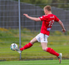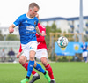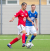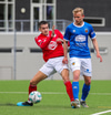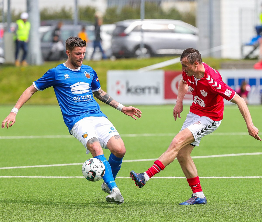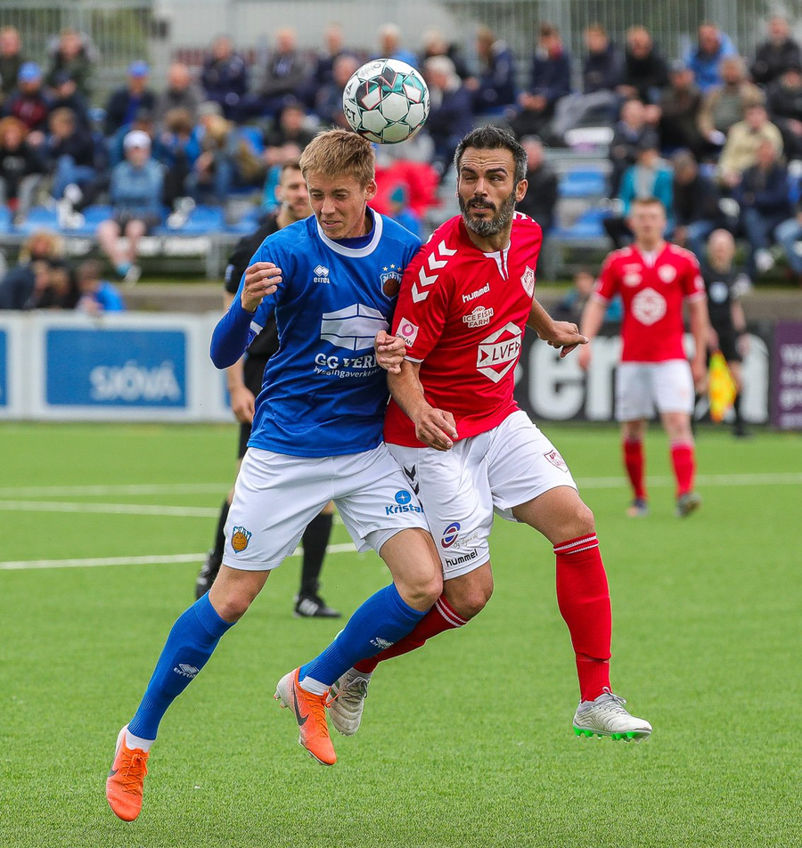 Haraldur Einar Ásgrímsson með góða fyrirgjöf en finnur ekki pönnuna á Þóri Guðjónssyni