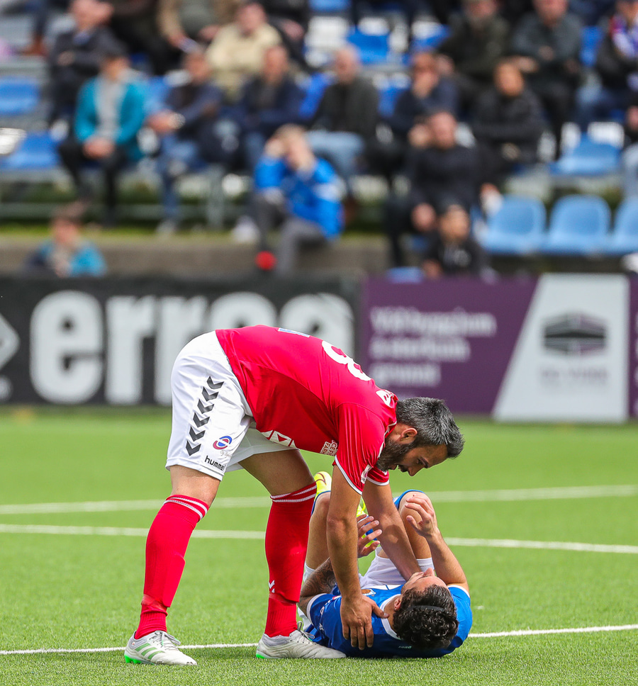 Frábærlega varið hjá El-Hage! Albert Hafsteinsson var kominn upp að endamörkum, renndi boltanum á Hilmar Frey sem lét vaða en El-Hage ver frábærlega