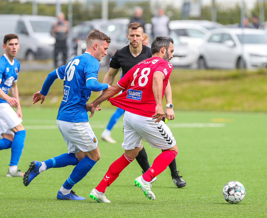 Gult spjald: Mykolas Krasnovskis (Leiknir F.)