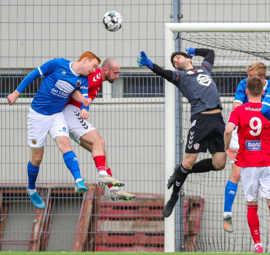 Salko Jazvin nálægt því að stanga boltann í netið eftir fyrirgjöf. Það er enn líf í gestunum