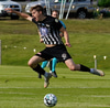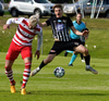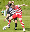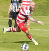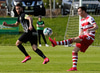 Ásgeir Marteinsson straujar Kairo niður þegar Magni voru á leið í skyndisókn. Siggi sleppir því að spjalda hann sem stuðningsmenn Magna voru ekki sáttir með.