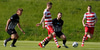 HK byrjar með boltann og sækir í átt að sundlauginni í fyrri hálfleiknum.