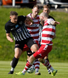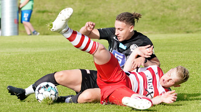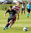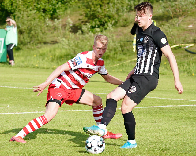Hjörvar Sigurgeirsson fer illa með Ásgeir Börk og á öflugan sprett. Magni vildi fá auki í kjölfarið en ekkert dæmt.