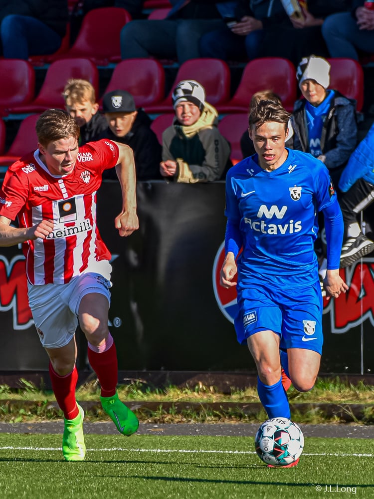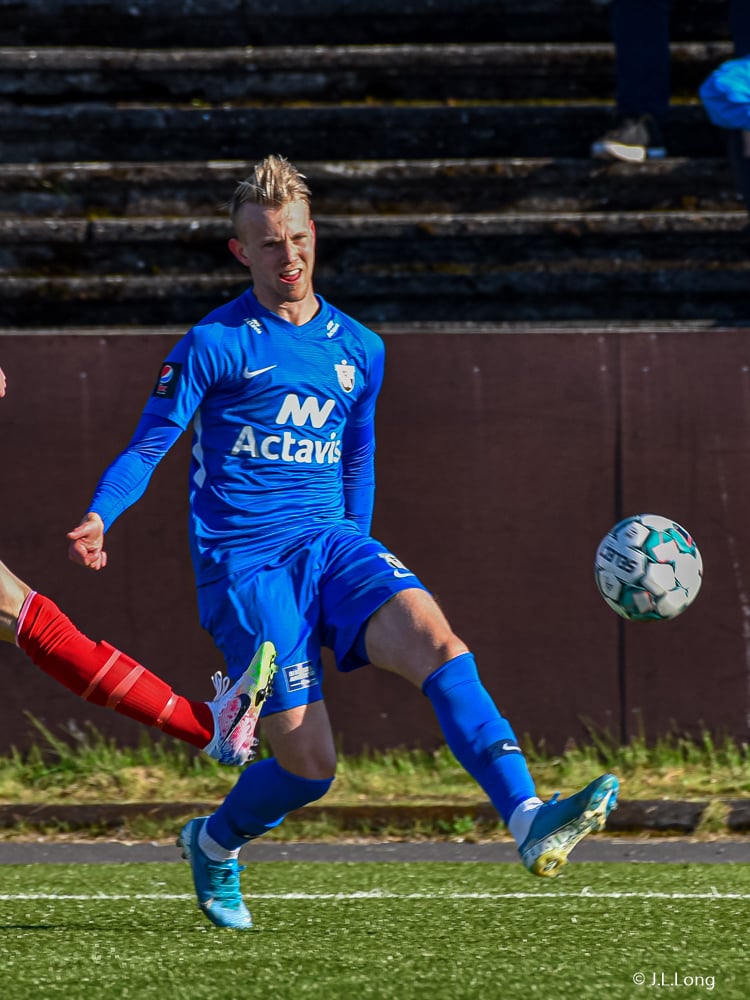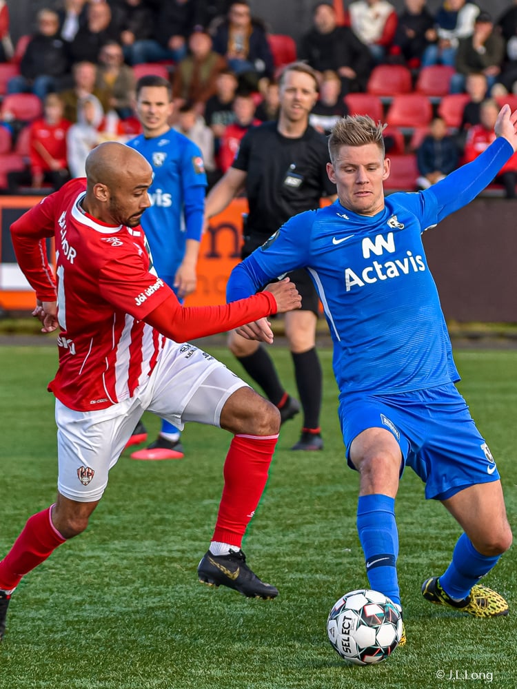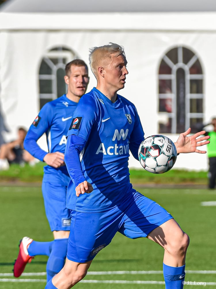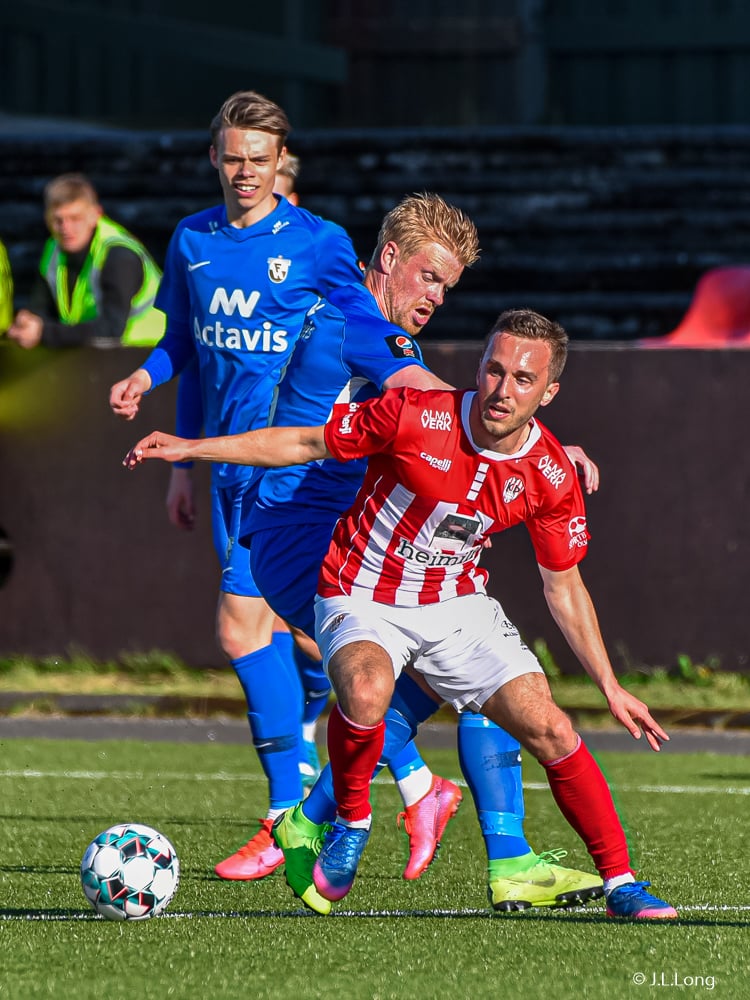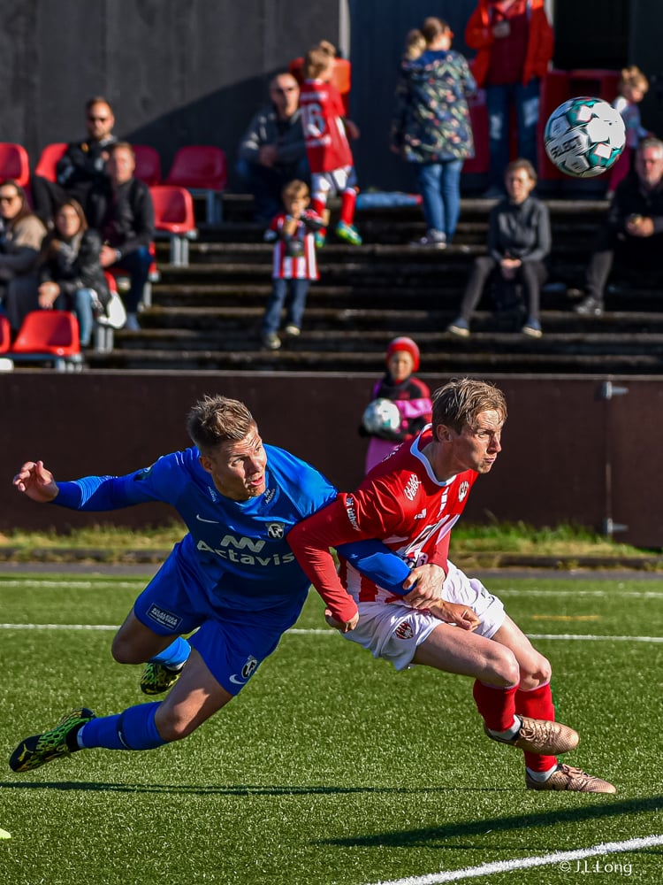 Jónatan Ingi í dauðafæri óvænt í teignum, lyftir boltanum yfir Svein en Atli Geir Gunnarsson bjargar á ótrúlegan hátt á línu með Morten Beck í bakinu.
