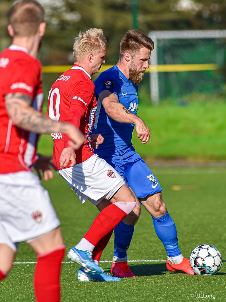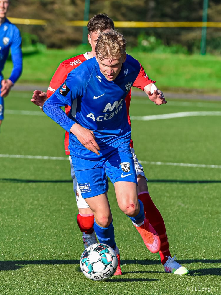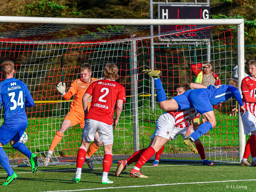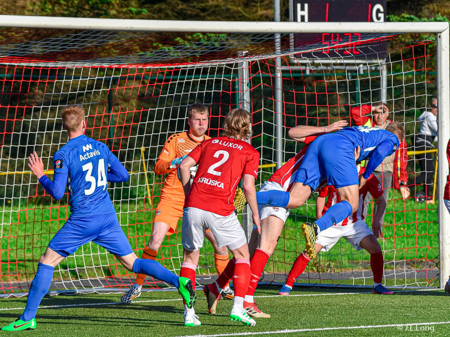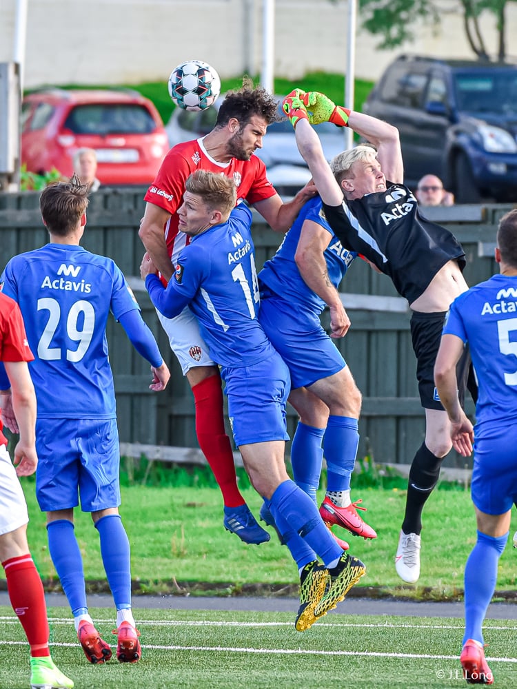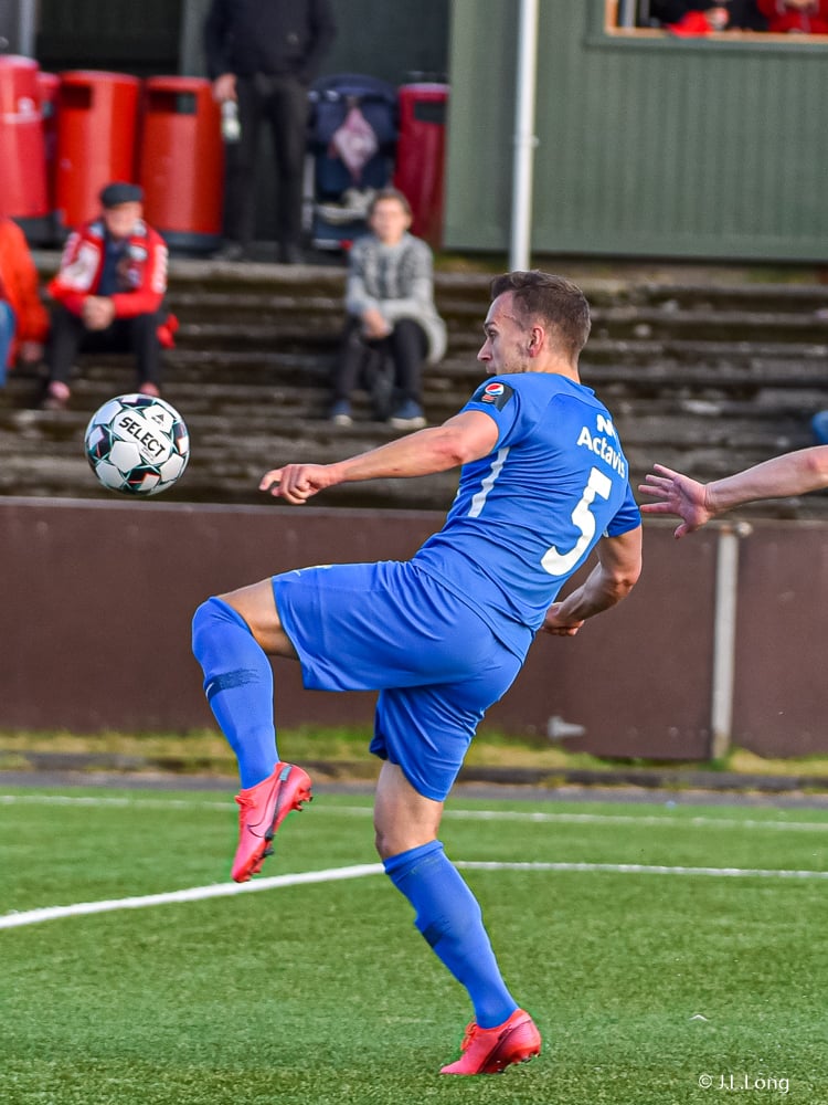 Jónatan Ingi í dauðafæri óvænt í teignum, lyftir boltanum yfir Svein en Atli Geir Gunnarsson bjargar á ótrúlegan hátt á línu með Morten Beck í bakinu.
