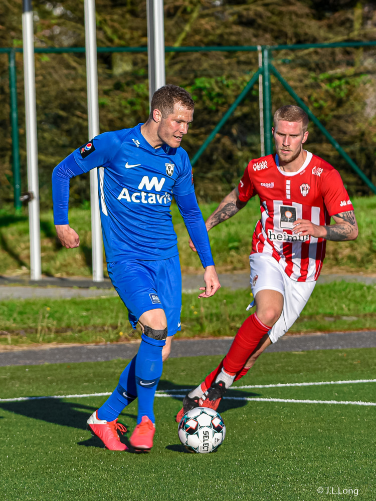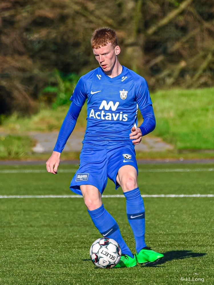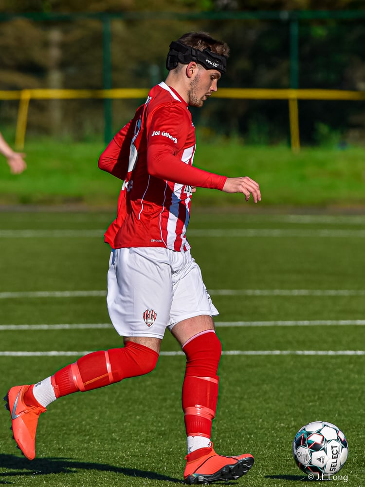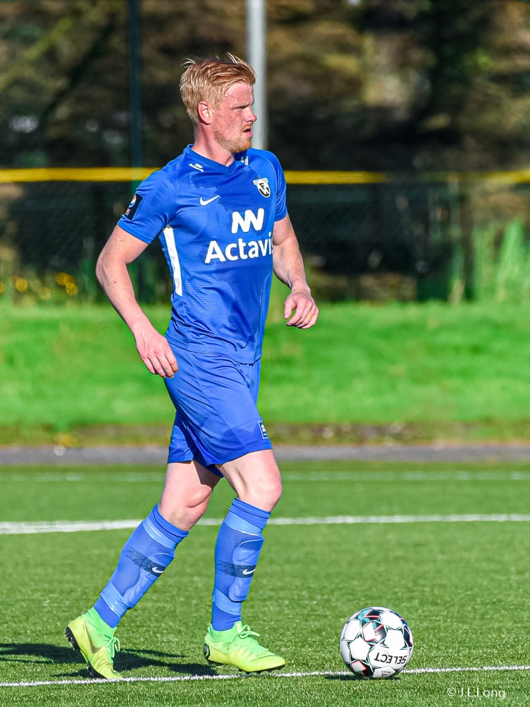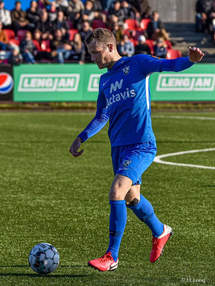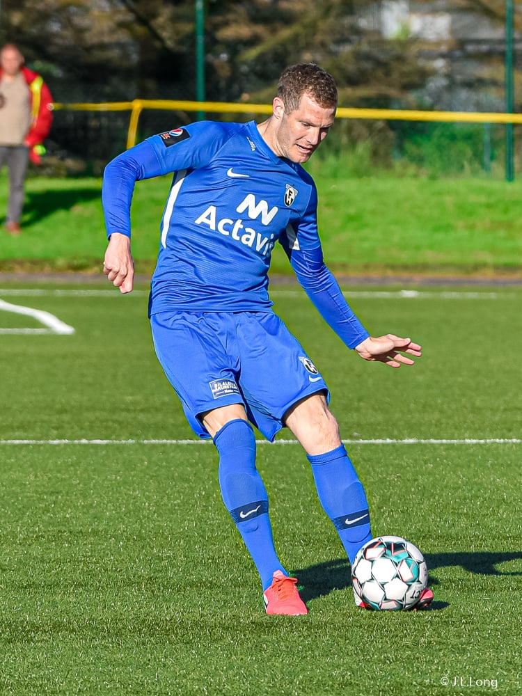 Fær boltann í fætur um 25 metra frá marki rekur hann aðeins áfram í átt að teignum og smyr hann í samskeytin. Daði hreyfði sig ekki á línunni. Hér er allt jafnt!