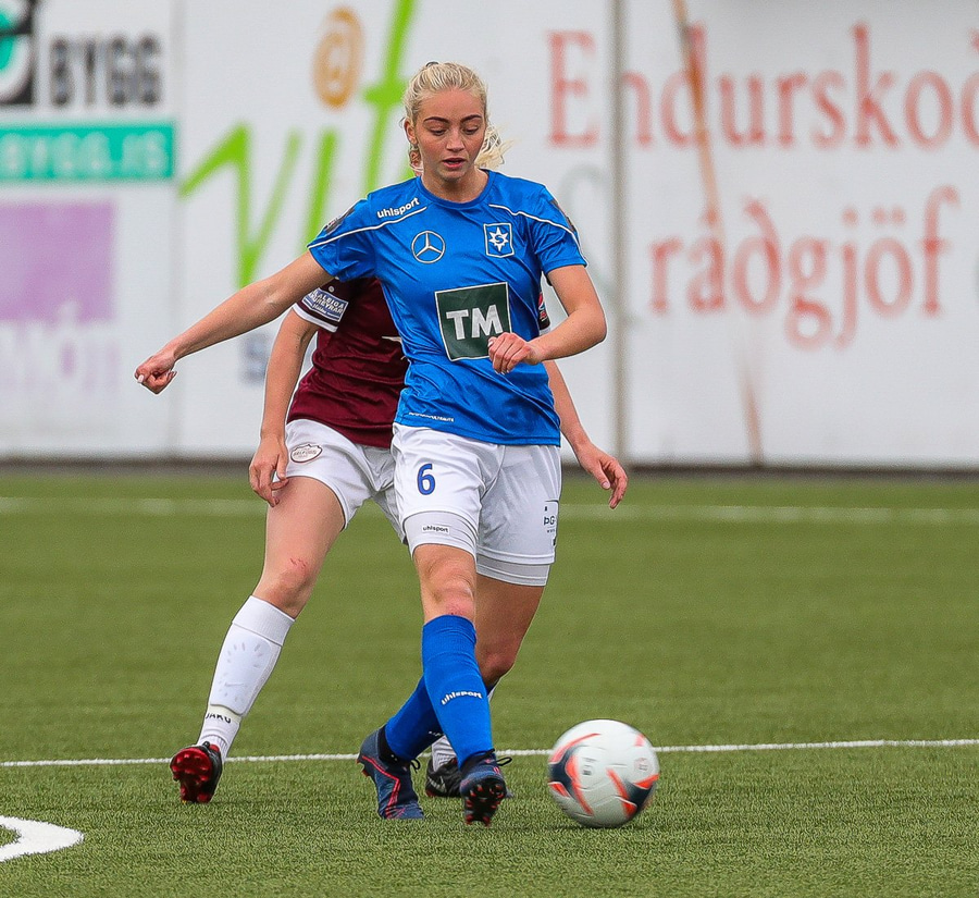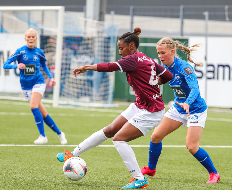 Jasmín tapar boltanum illa og Tiffany vinnur hann, sendir inn fyrir á Magdalenu sem klárar frábærlega fram hjá Birtu í markinu. Annað mark hennar í dag