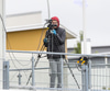 Alexander Már með skalla en framhjá. Þetta er hálfmáttlítið hjá heimamönnum núna