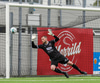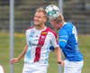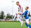 Þórir Guðjónsson með skalla sem fer framhjá markinu. Hann sneiddi boltann snyrtilega með rauðum kollinum. Minnti á Jared Borghetti hjá Mexíkó á HM 2002.