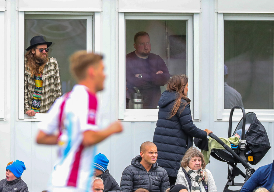 Það er vel mætt í Safamýrina í dag, bæði Frammarar og Leiknismenn. Það mætti þó alveg heyrast örlítið meira í áhorfendum...